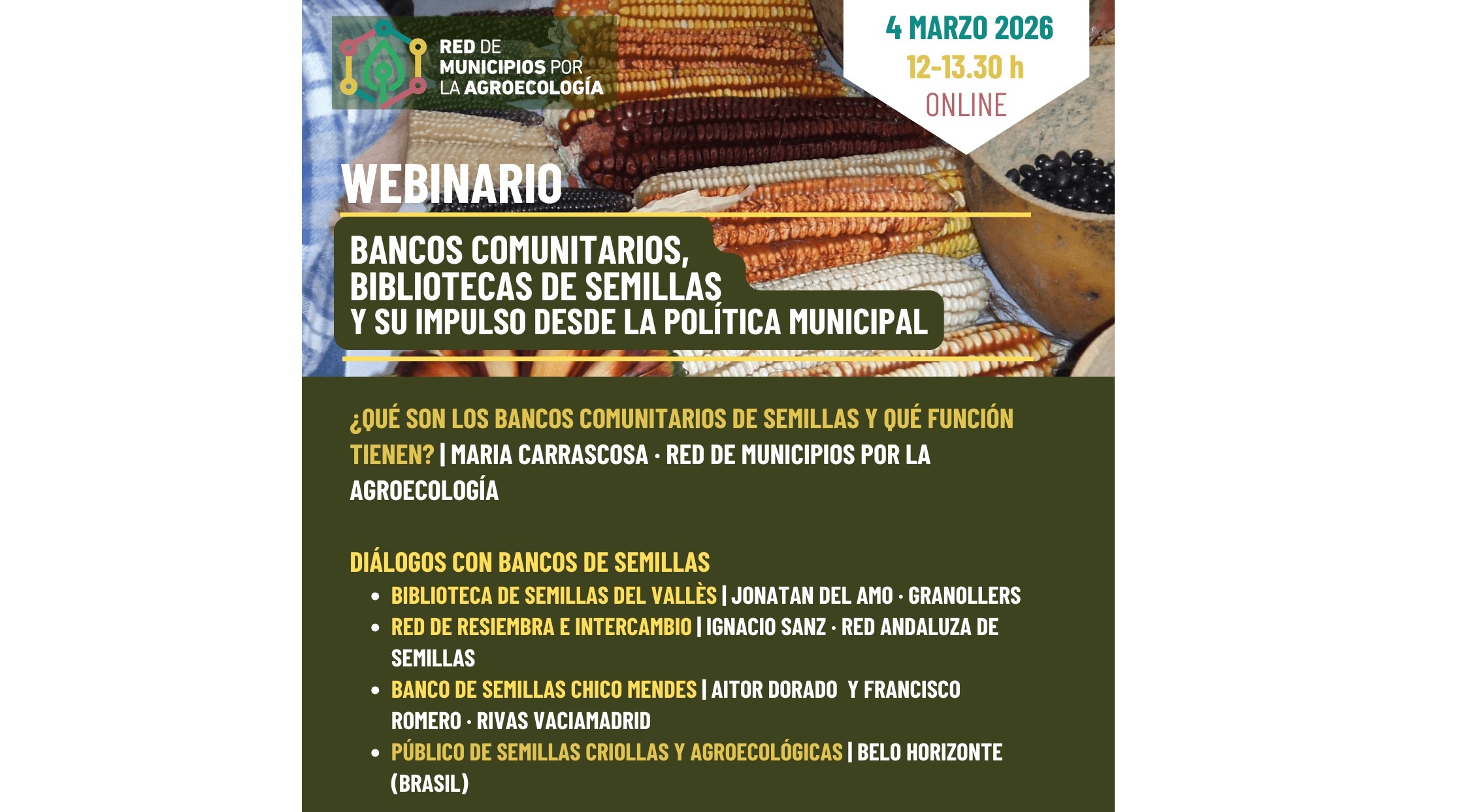 El webinario tiene como objetivo generar un espacio de intercambio y aprendizaje colectivo en torno a los bancos comunitarios y bibliotecas de semillas como herramientas clave para la gestión colectiva de la biodiversidad cultivada, así como para explorar vías de impulso y refuerzo desde las políticas alimentarias locales.