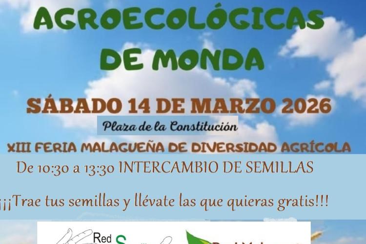 El próximo sábado 14 de marzo de 10:30 a 13:30h. estará disponible nuestra biblioteca y banco comunitario de semillas en la XIII Feria Malagueña de Diversidad Agrícola en la Plaza de la Constitución