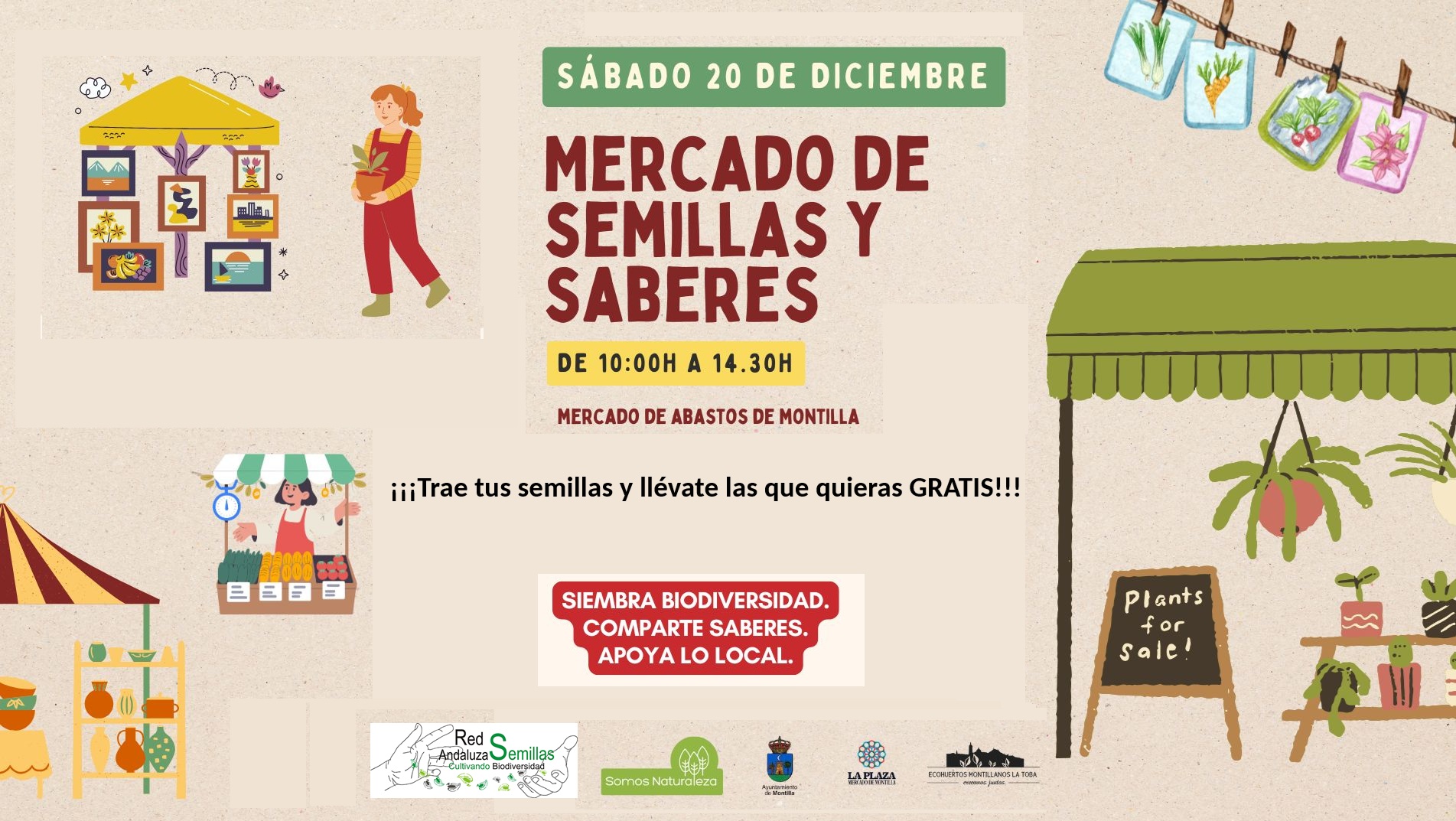 El sábado, 20 de noviembre estaremos intercambiando semillas en el Mercado de Semillas y Saberes de Montilla.
