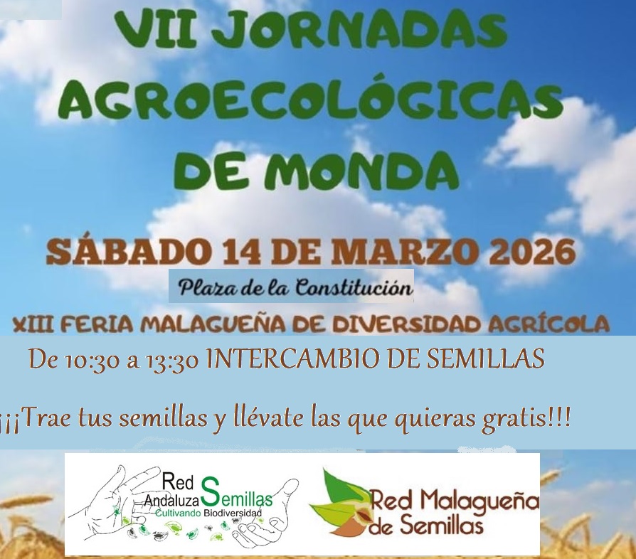 El sábado, 14 de marzo estaremos intercambiando semillas en las VII Jornadas agroecológicas de Monda (Málaga).